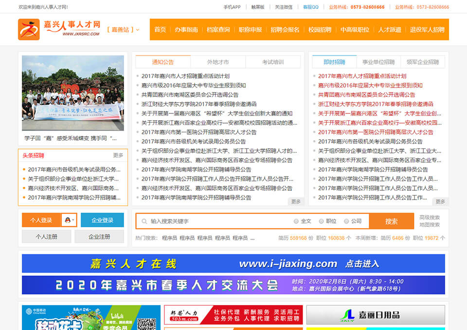 公司自主開發和運營的嘉興人才網( www.573job.com )和舟山人才網( www.93job.com )等平臺,經過多年發展已經成為當地最具影響力、最具權威性、最具招聘效果的人才網站之一。